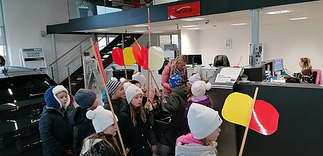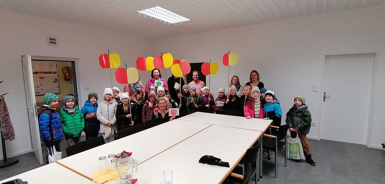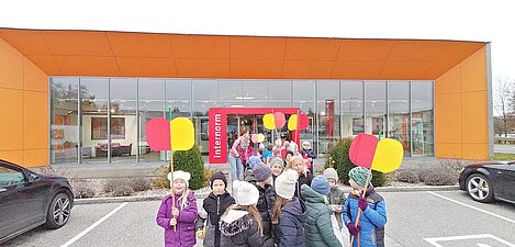 Heute reiste die 2. Klasse mit Äpfeln durch Arbing. Im Kindergarten, am Gemeindeamt, bei Nah und Frisch Breiteneder, im Autohaus Aschauer und bei der Firma Grabmann wurde ein Gedicht vorgetragen, Apfelkunstwerke und Äpfel ausgeteilt.