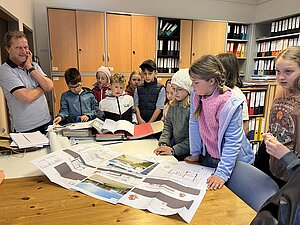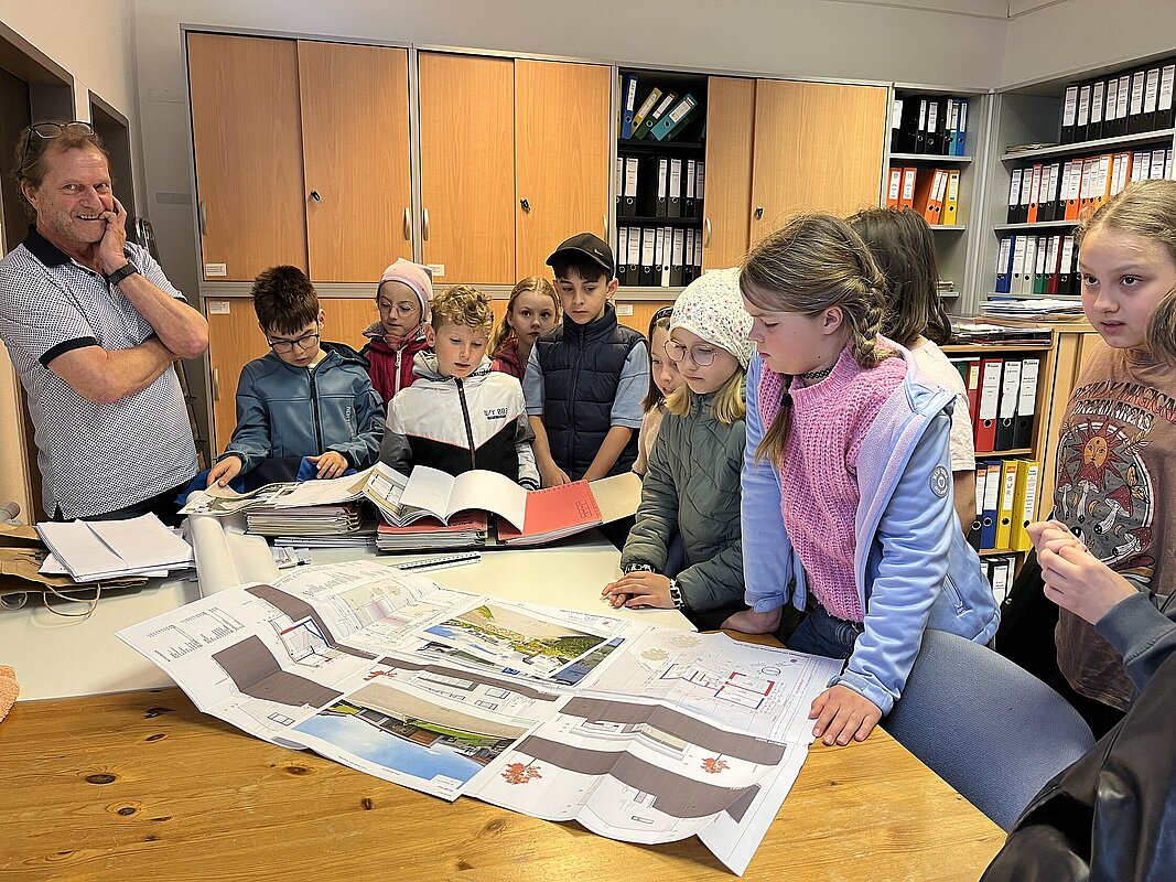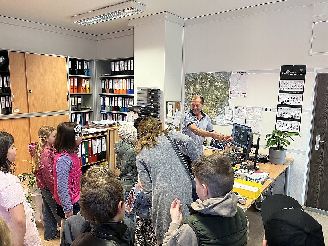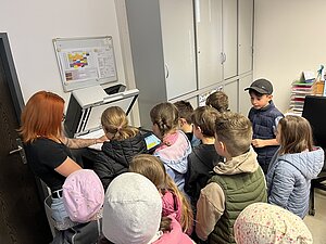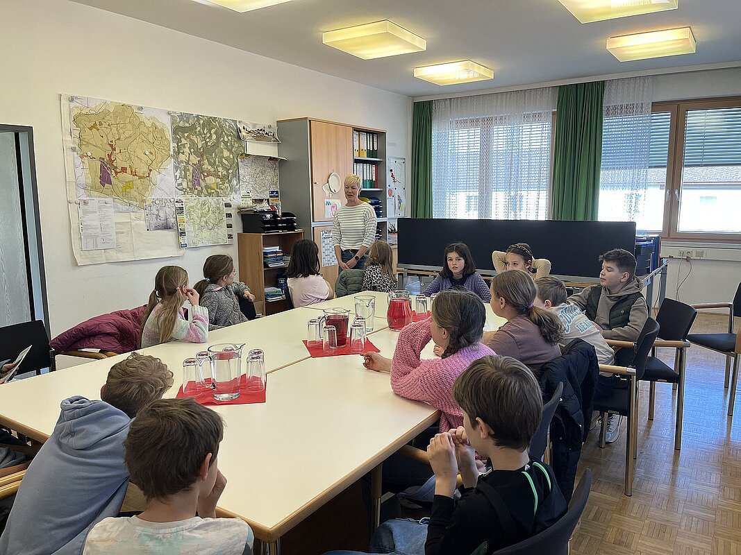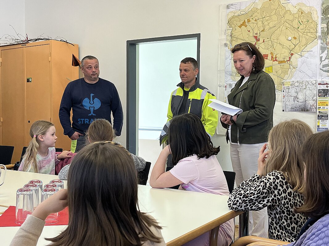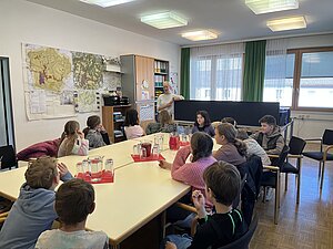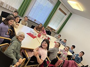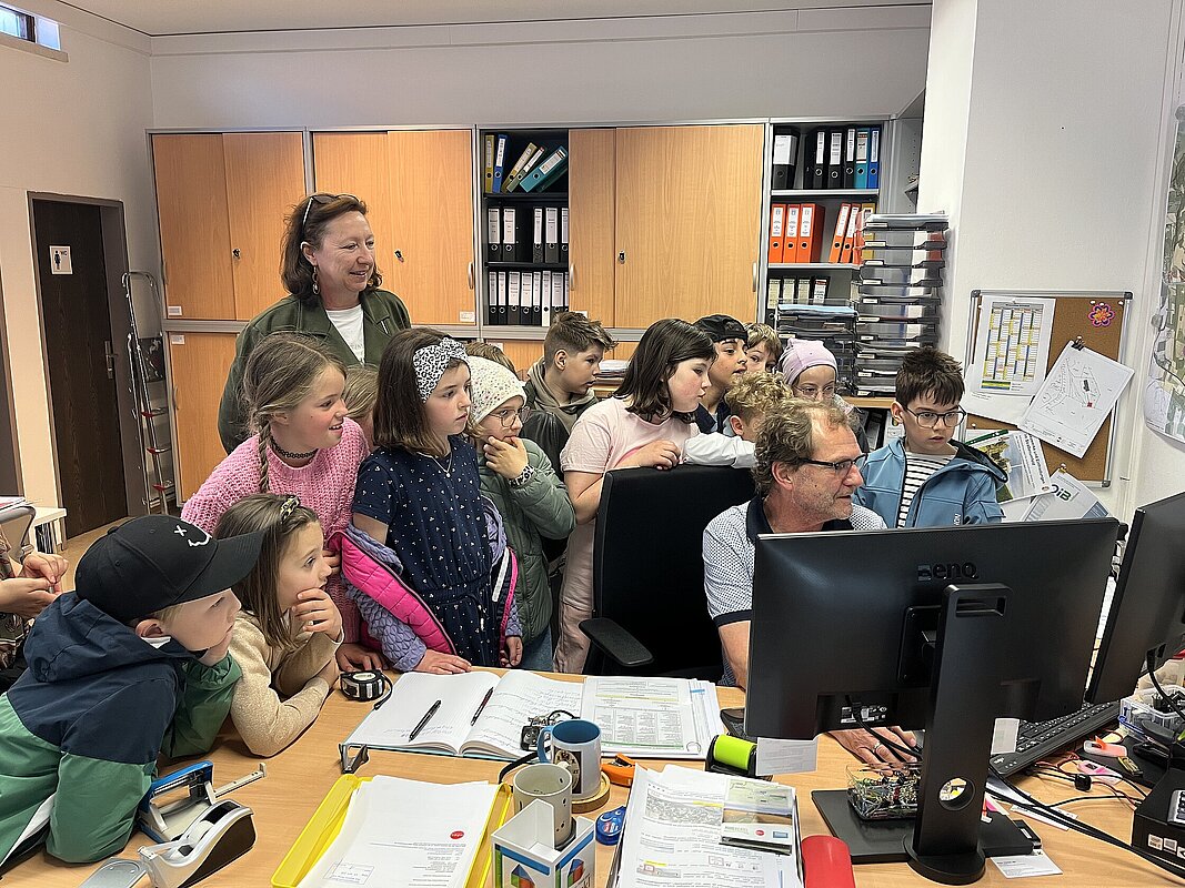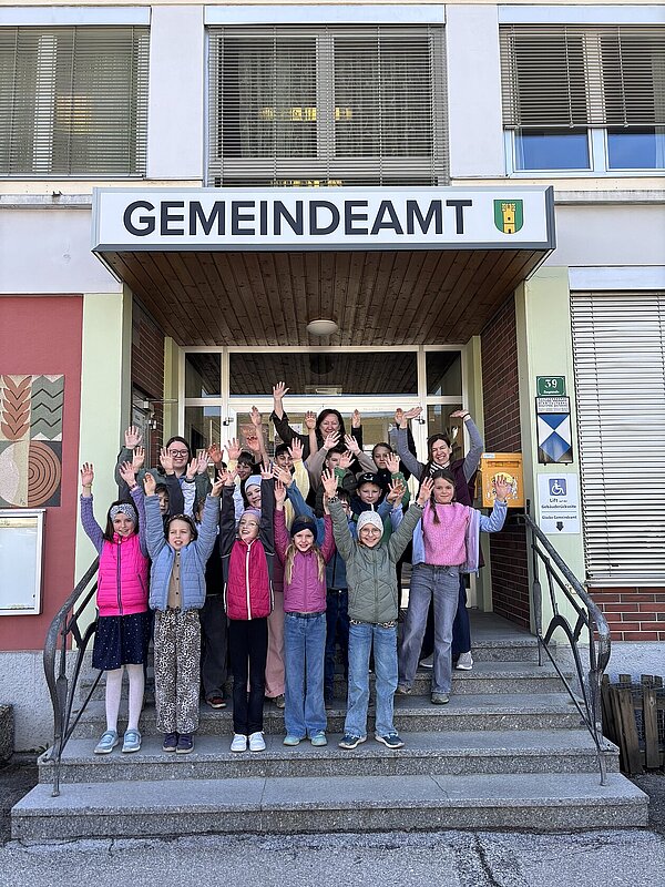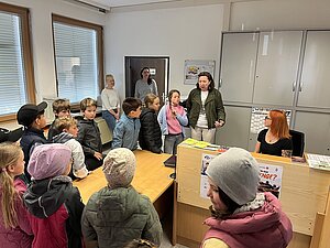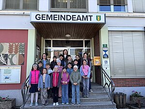 Am 20. April besuchte die 3. Klasse das Gemeindeamt. Bürgermeisterin Hermine Leitner führte uns durch die Räumlichkeiten und die einzelnen Abteilungen stellten sich vor. Teresa Hofer zeigte, was man im Bürgerservice alles erledigt, Gottfried Neulinger erklärte uns Baupläne und die Arbeit im Bauamt. Nach einem kurzen Besuch im Büro der Buchhaltung bei Christine Steindl und einem Blick ins Büro der Bürgermeisterin durften wir im kleinen Sitzungssaal und Büro der Amtsleiterin Platz nehmen. Die beiden Bauhofmitarbeiter Karl Strondl und Hannes Müller schauten ebenfalls auf einen Kurzbesuch vorbei. Die Amtsleiterin Elisabeth Fürholzer ließ die Schülerinnen und Schüler überlegen, wie oft am Tag man die Dienste der Gemeinde braucht und womit sich eine Amtsleiterin beschäftigt. Gestärkt nach einer köstlichen Jause wurde das Schätzspiel ausgewertet und die vier Gewinnerinnen freuten sich über Kekse. Die Bürgermeisterin verabschiedete sich noch mit einem kleinen Geschenk von allen Kindern. Wir bedanken uns für den netten Empfang am Gemeindeamt!