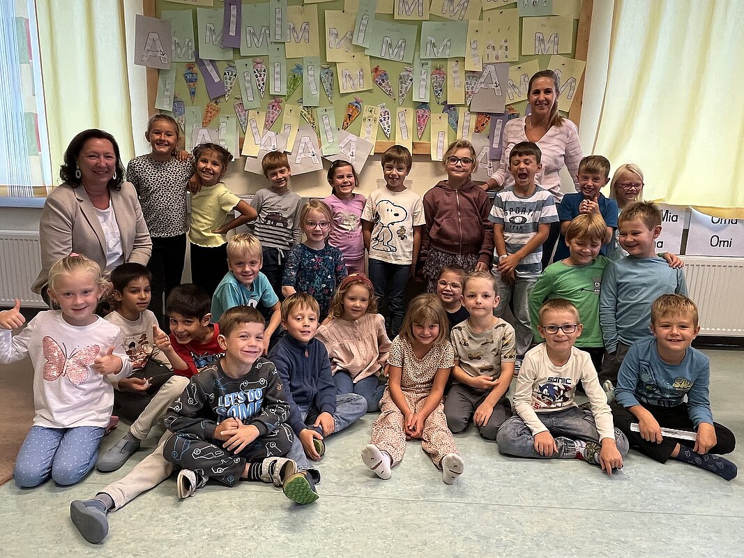Unsere Frau Bürgermeisterin Hermine Leitner besuchte in der 3. Schulwoche die 24 Kinder der 1. Klasse und verteilte ein kleines Geschenk. Der persönliche Kontakt mit den Schulkindern ist ihr immer sehr wichtig.
