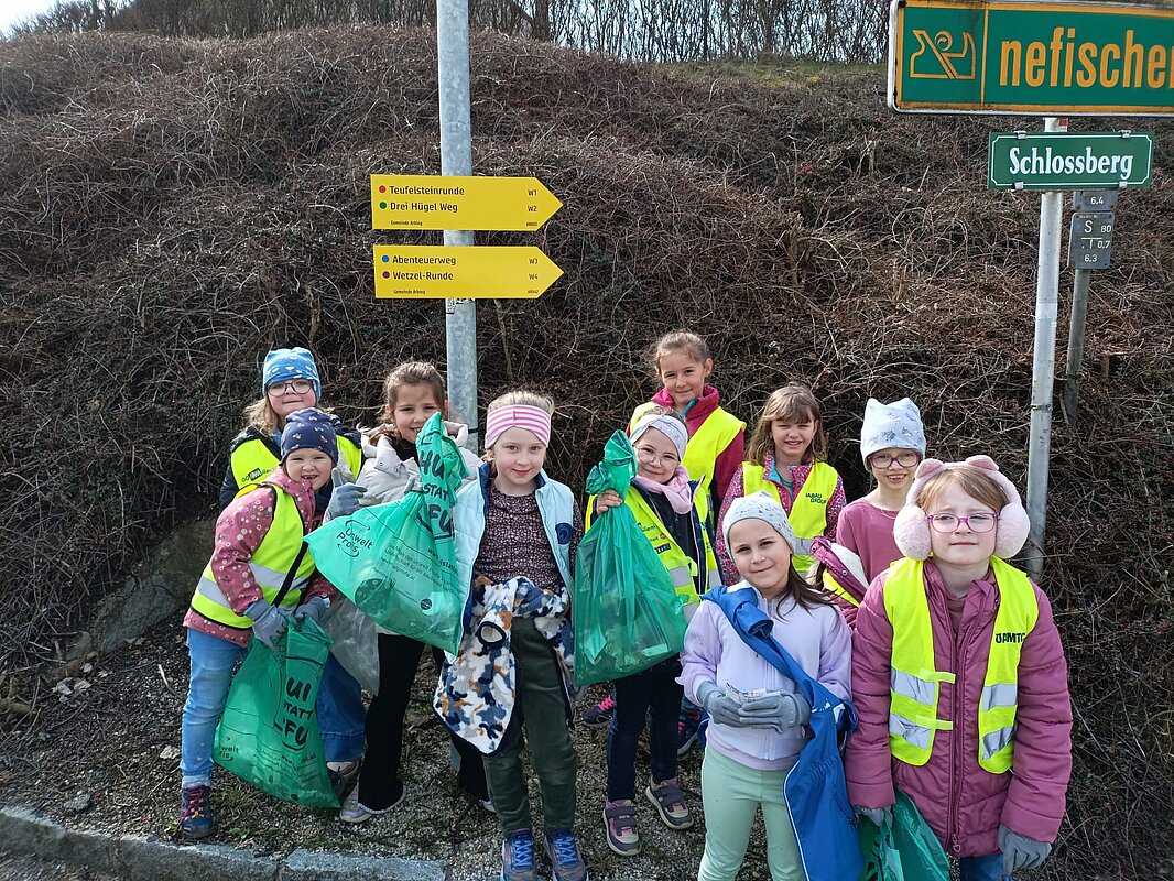 Am Dienstag, 24. März waren 80 Kinder unserer Schule in Arbing unterwegs und sammelten fleißig achtlos weggeworfenen Müll ein. Gemeinsam mit den Lehrkräften und einigen Begleitpersonen wurde unser Gemeindegebiet gesäubert. Als Dank erwarteten uns beim Gemeindeamt leckere Pizzen von Frau Bürgermeisterin Hermine Leitner.