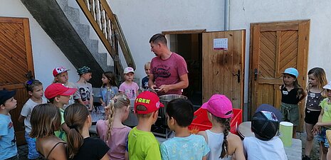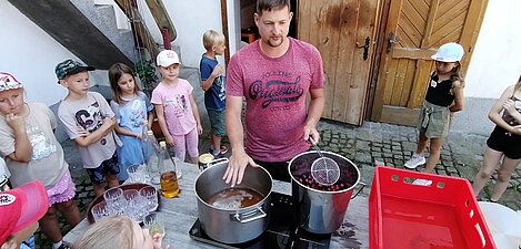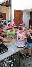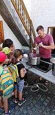 Neben spannenden Einblicken in die Natur konnten die Kinder auch kleine Schweine, Hühner und sogar Kätzchen kennenlernen. Mit Begeisterung halfen sie zudem beim Zubereiten eines leckeren Kirschkompotts. Jedes Kind durfte sich eine kleine Kostprobe davon mitnehmen. Der Ausflug war nicht nur ein schöner, sondern auch ein lehrreicher Ausklang in die Sommerferien - ein Erlebnis, das sicherlich in Erinnerung bleibt. Vielen Dank für den schönen Lehrausgang!