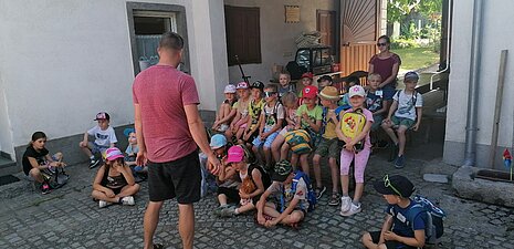 Die 1. Klasse besuchte am 25. Juni gemeinsam mit Ortsbäuerin Edith Müller den Biohof Englhof in Baumgartenberg.