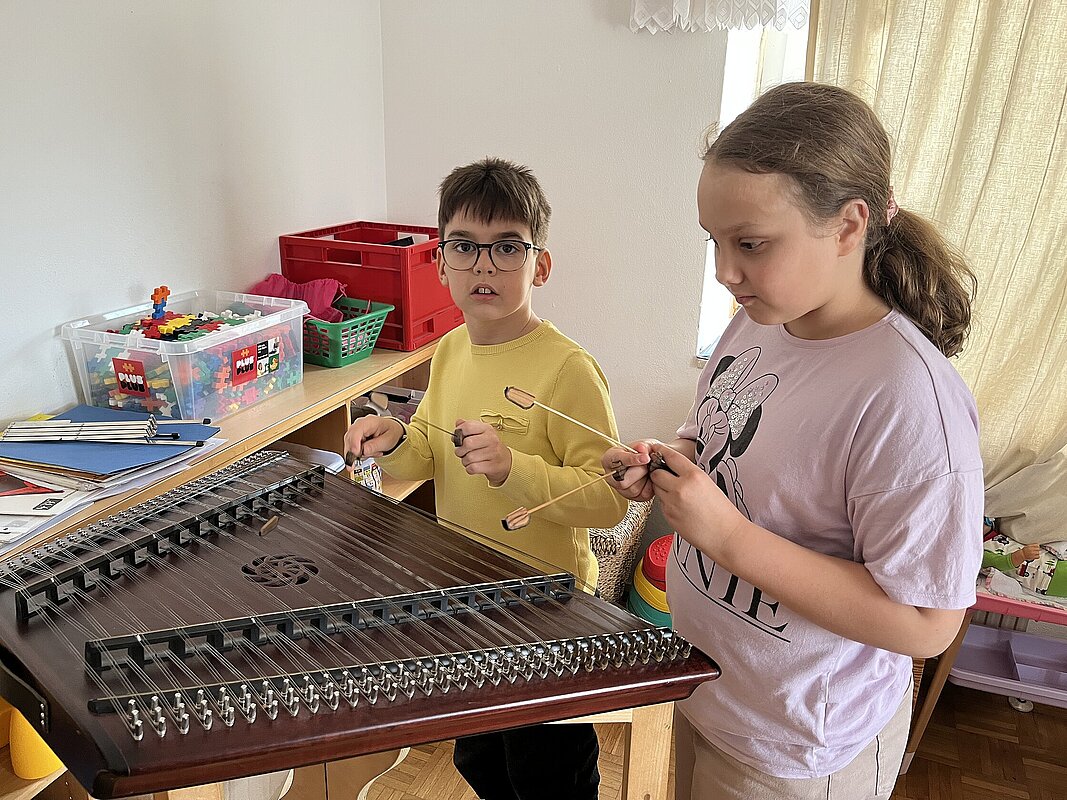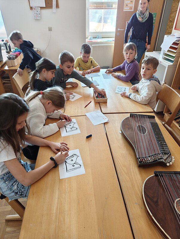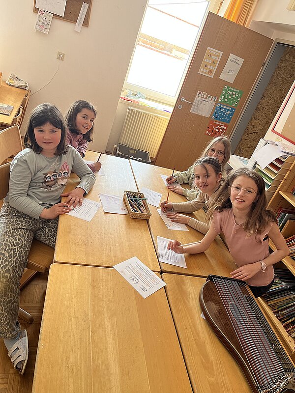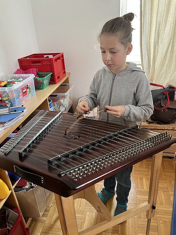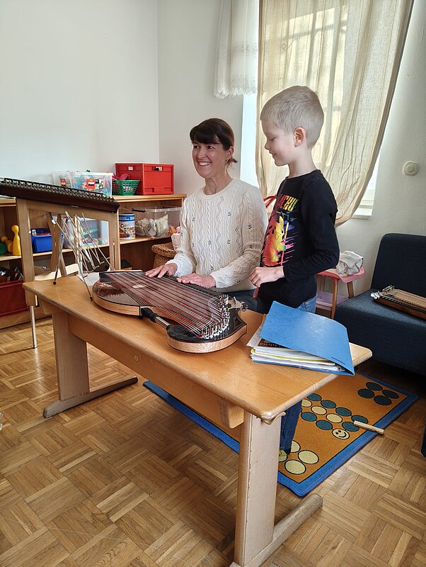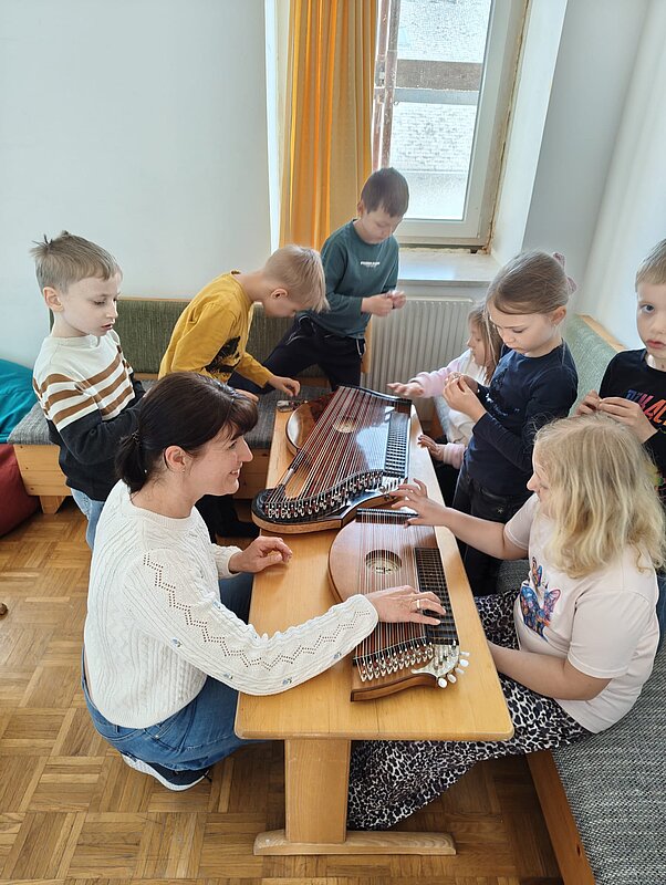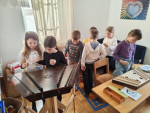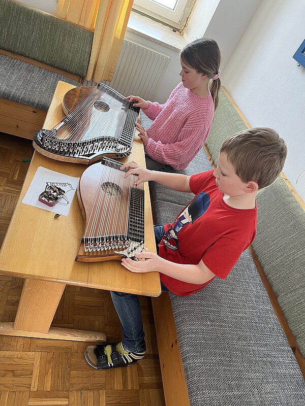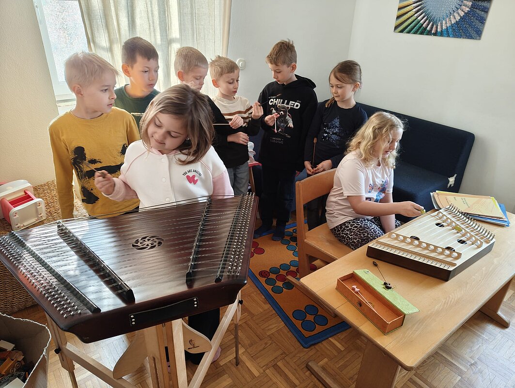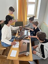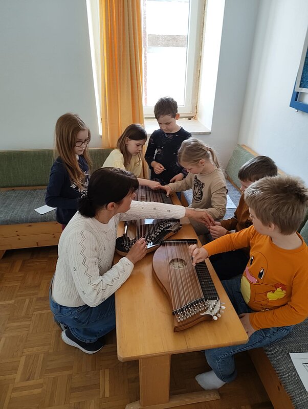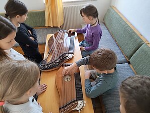Um die heute eher unbekannten Instrumente Zither und Hackbrett vorzustellen besuchte uns Susanne Koppler einen Vormittag lang. Jede Schulstufe lauschte den schönen Klängen der beiden Saiteninstrumente und durften diese auch selber ausprobieren.
