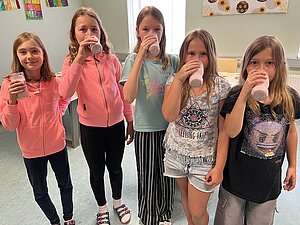 Am 1. Juni ist Weltmilchtag. Aus diesem Anlass besuchten uns Anfang Juni die Bäuerinnen Edith Müller und Franziska Strondl. Sie erklärten jeder Klasse die Bedeutung von Milch für uns Menschen und bereiteten leckere Erdbeermilch für alle Kinder zu. Die Molkereien Schärdinger und Gmundner Milch sponserten die Milch dafür. Ein herzliches Dankeschön an alle!