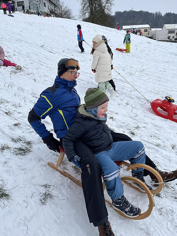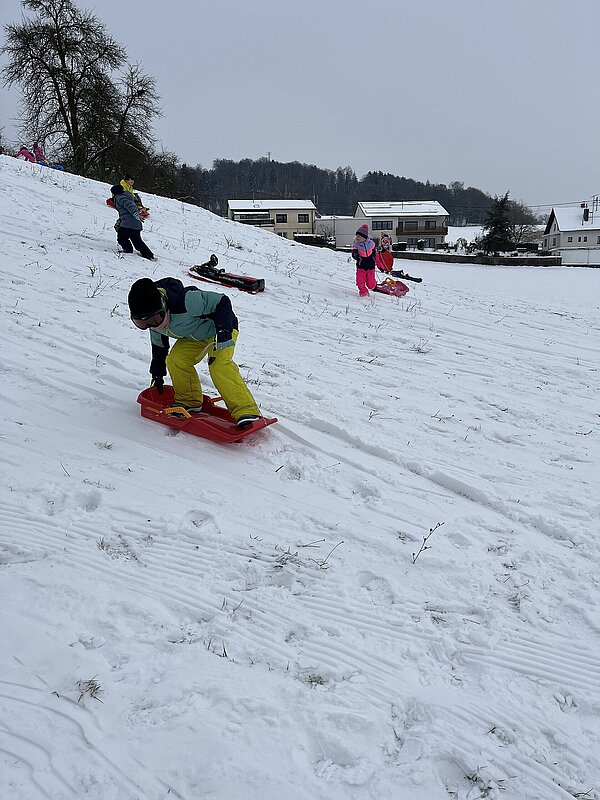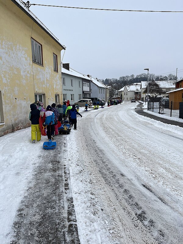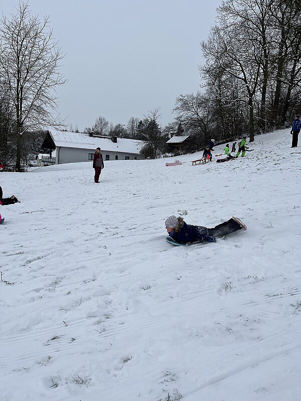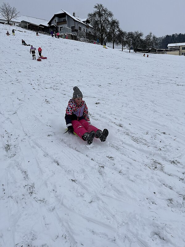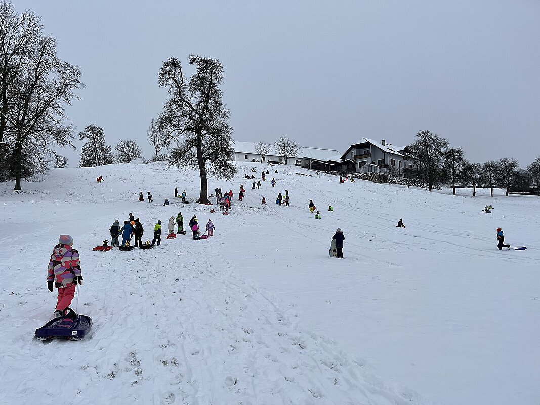 Am Montag haben wir die günstige Schneelage ausgenützt und uns nach der Pause aufgemacht zur Wiese beim “Bauer im Hof”. Ausgerüstet mir Bobs, Schlitten und Rutschtellern machten 80 Kinder und Lehrkräfte die Wiese unsicher und genossen die kleine Auszeit vom Schulalltag. Ein herzliches Danke an Familie Gintersdorfer für die Erlaubnis, ihre Wiese zu nutzen - wir hatten sehr viel Spaß!