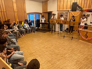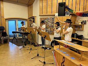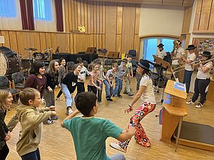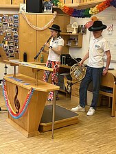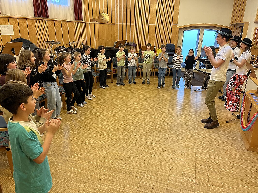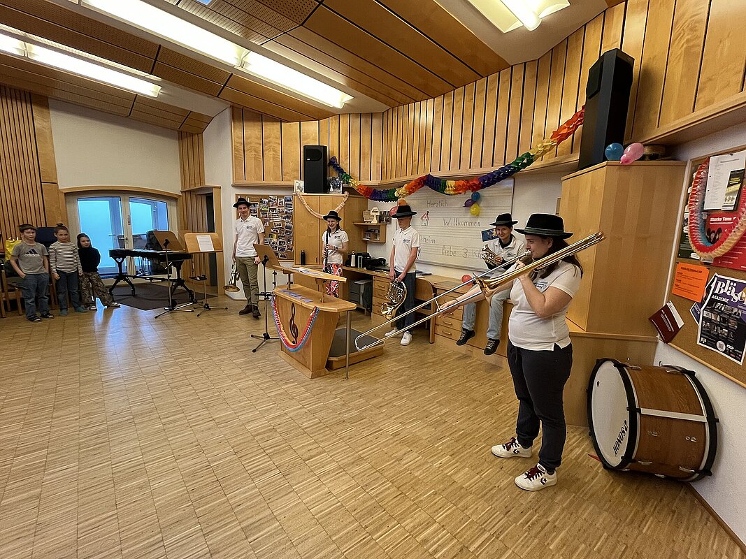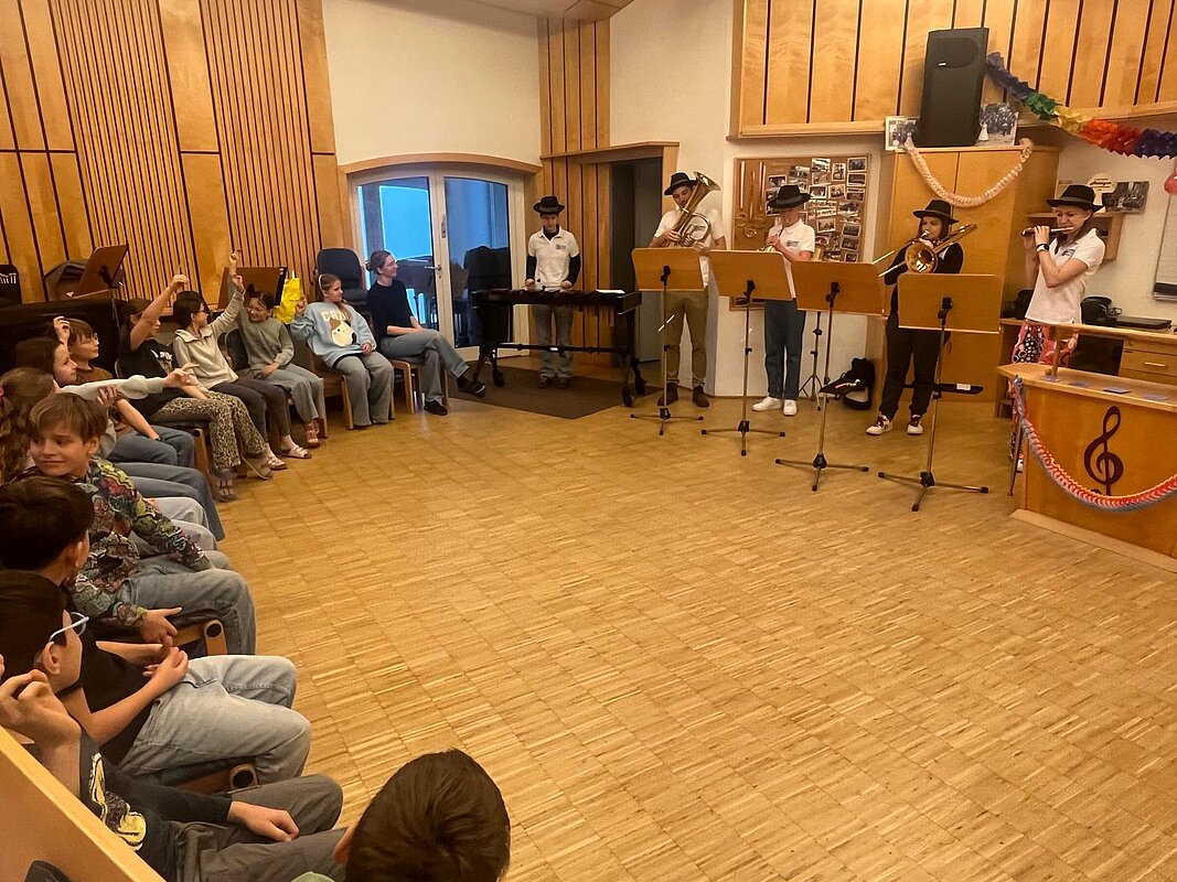 Fünf Mitglieder des Musikvereins gestalteten für unsere Schülerinnen und Schüler einen Workshop im Musikheim. Rund um das Thema “Pippi Langstrumpf” wurden Instrumente vorgestellt, ein Geräuschememory gespielt, verschiedene Musikstücke vorgetragen, Rhythmusübungen absolviert und Instrumenten-Geräusche erraten. Vielen Dank für diesen tollen Vormittag!