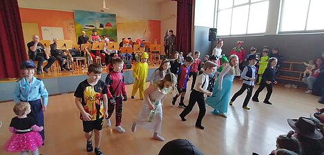 Am Faschingsdienstag war einiges los an der Volksschule. Am Vormittag hatte jede Klasse eine tolle Einheit Haltungsturnen im jeweiligen Klassenzimmer und nachmittags freuten wir uns über die gelungenen Beiträge der Schülerinnen und Schüler, des Kindergartens und der Nachmittagsbetreuung. Die vielen Besucher des Kinderfaschings in der Mehrzweckhalle bewunderten Bodypercussion, Tänze und Becherrhythmen.
