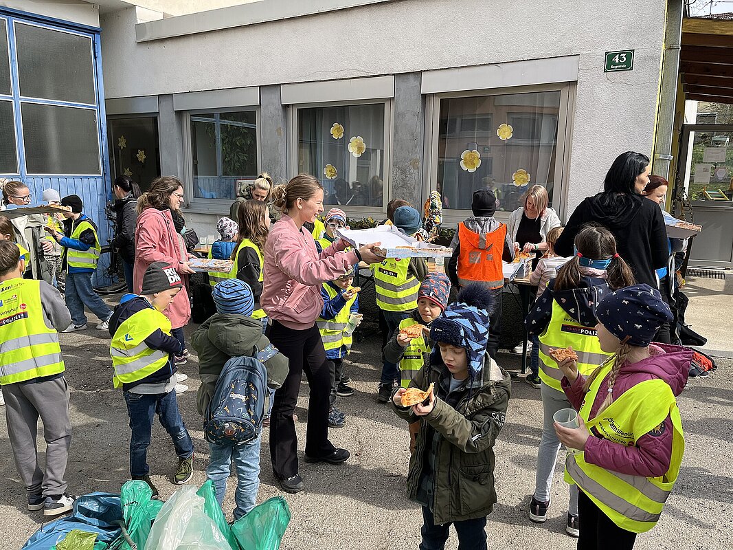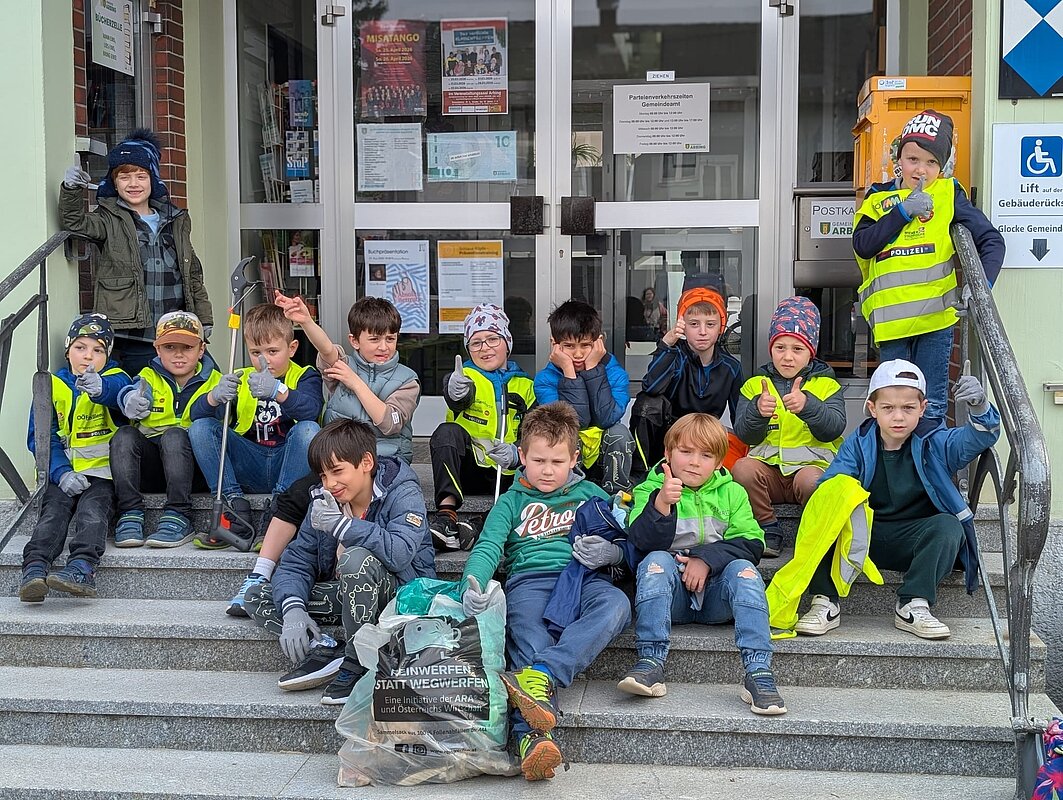 Am Dienstag, 24. März waren 80 Kinder unserer Schule in Arbing unterwegs und sammelten fleißig achtlos weggeworfenen Müll ein. Gemeinsam mit den Lehrkräften und einigen Begleitpersonen wurde unser Gemeindegebiet gesäubert. Als Dank erwarteten uns beim Gemeindeamt leckere Pizzen von Frau Bürgermeisterin Hermine Leitner.