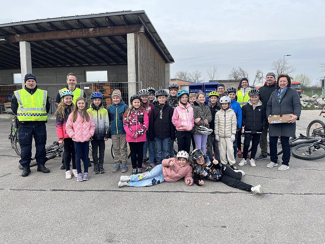Am 10. April haben alle 18 Schülerinnen und Schüler der 4. Klasse die praktische Radfahrprüfung bestanden! Als Belohnung gab es ein Eis von unserer Bürgermeisterin Hermine Leitner.