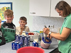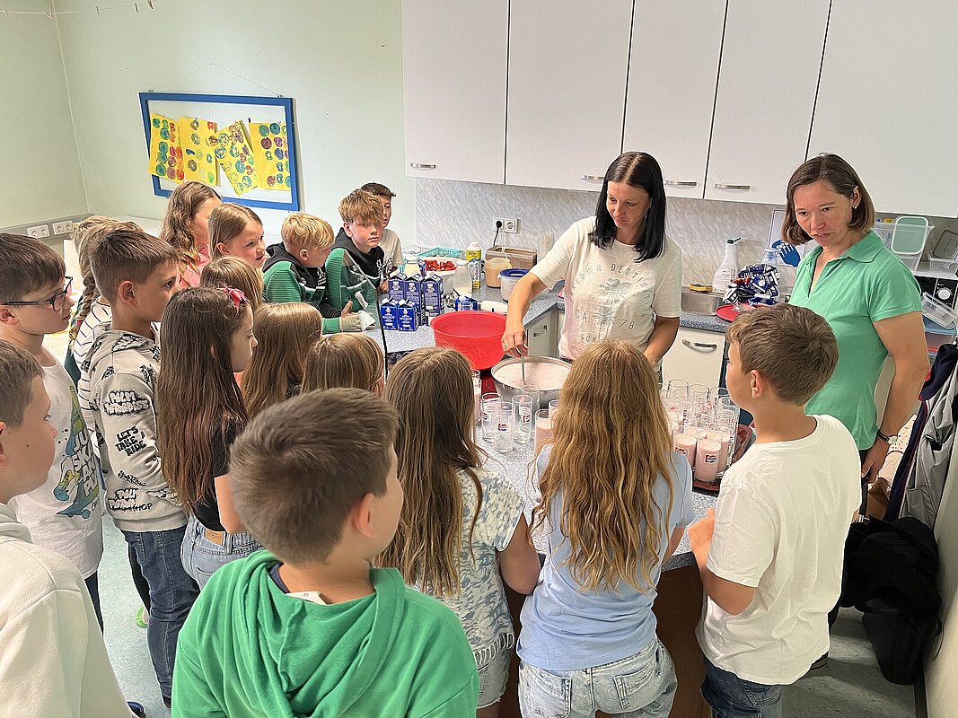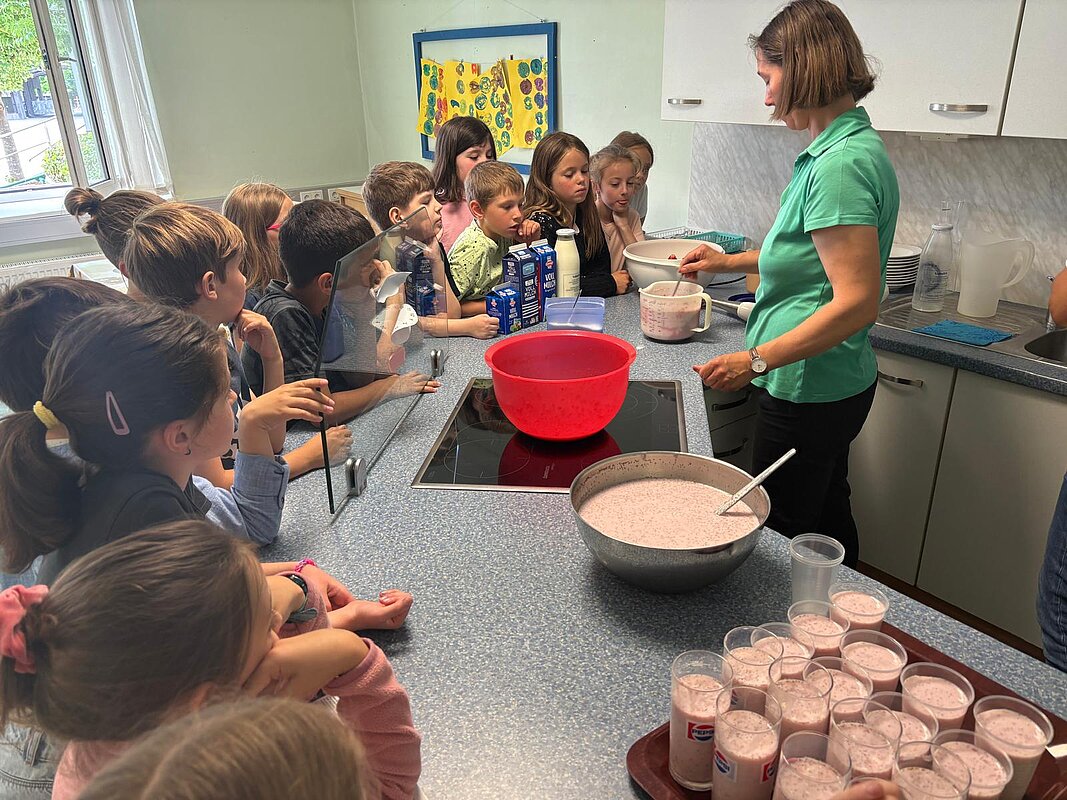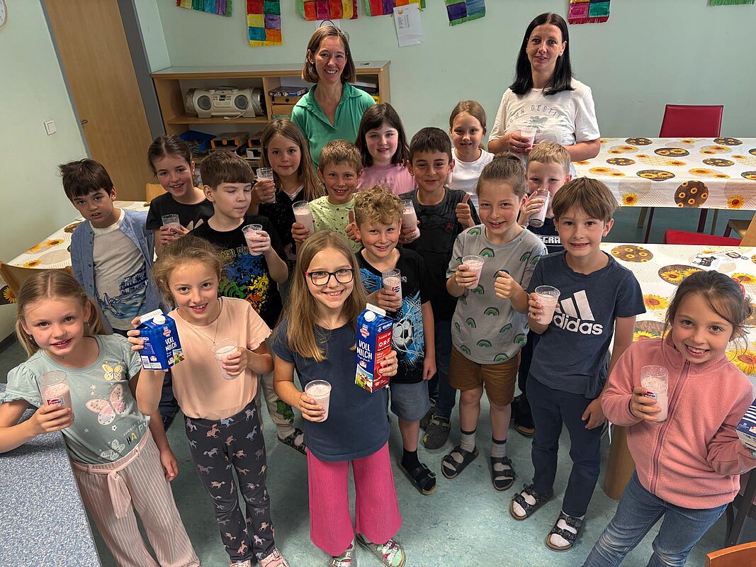 Am 1. Juni ist Weltmilchtag. Aus diesem Anlass besuchten uns Anfang Juni die Bäuerinnen Edith Müller und Franziska Strondl. Sie erklärten jeder Klasse die Bedeutung von Milch für uns Menschen und bereiteten leckere Erdbeermilch für alle Kinder zu. Die Molkereien Schärdinger und Gmundner Milch sponserten die Milch dafür. Ein herzliches Dankeschön an alle!