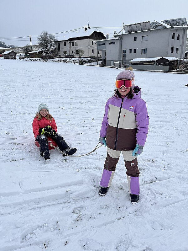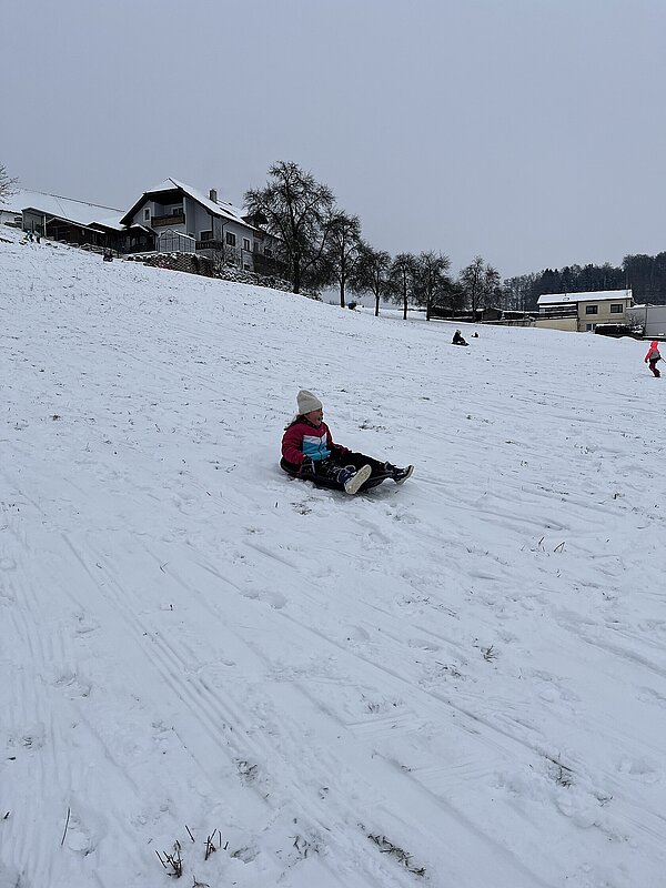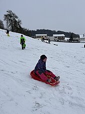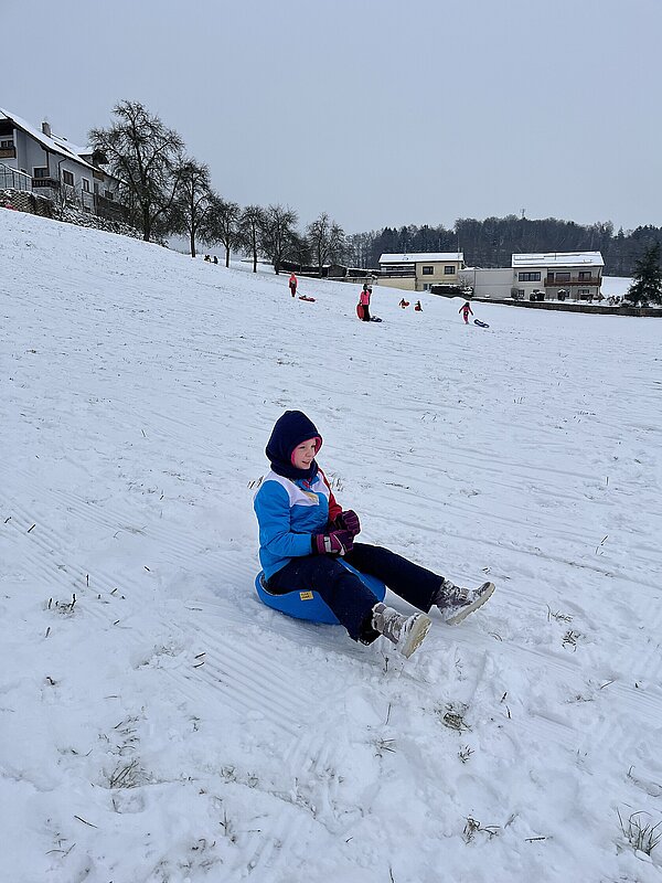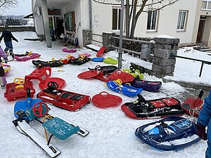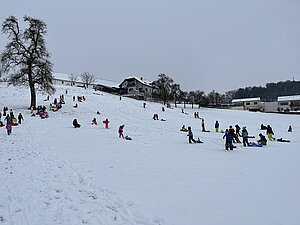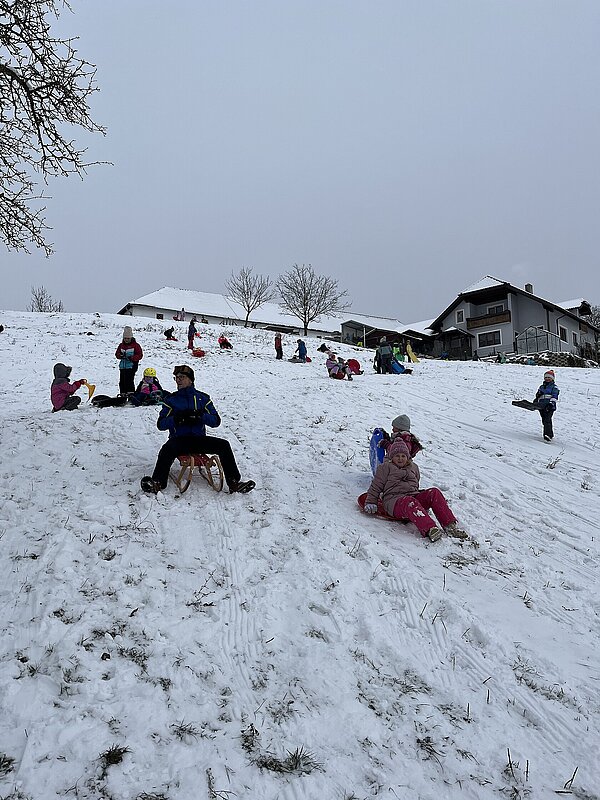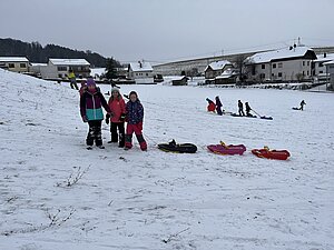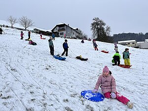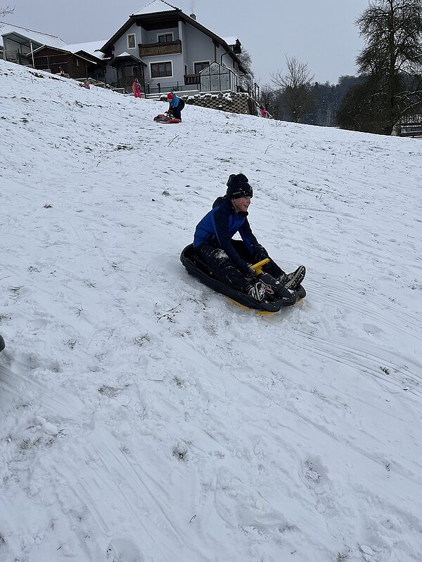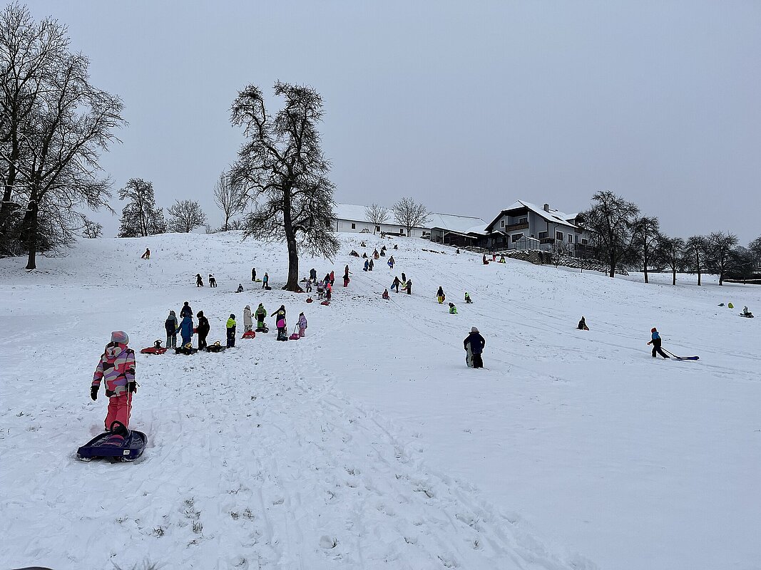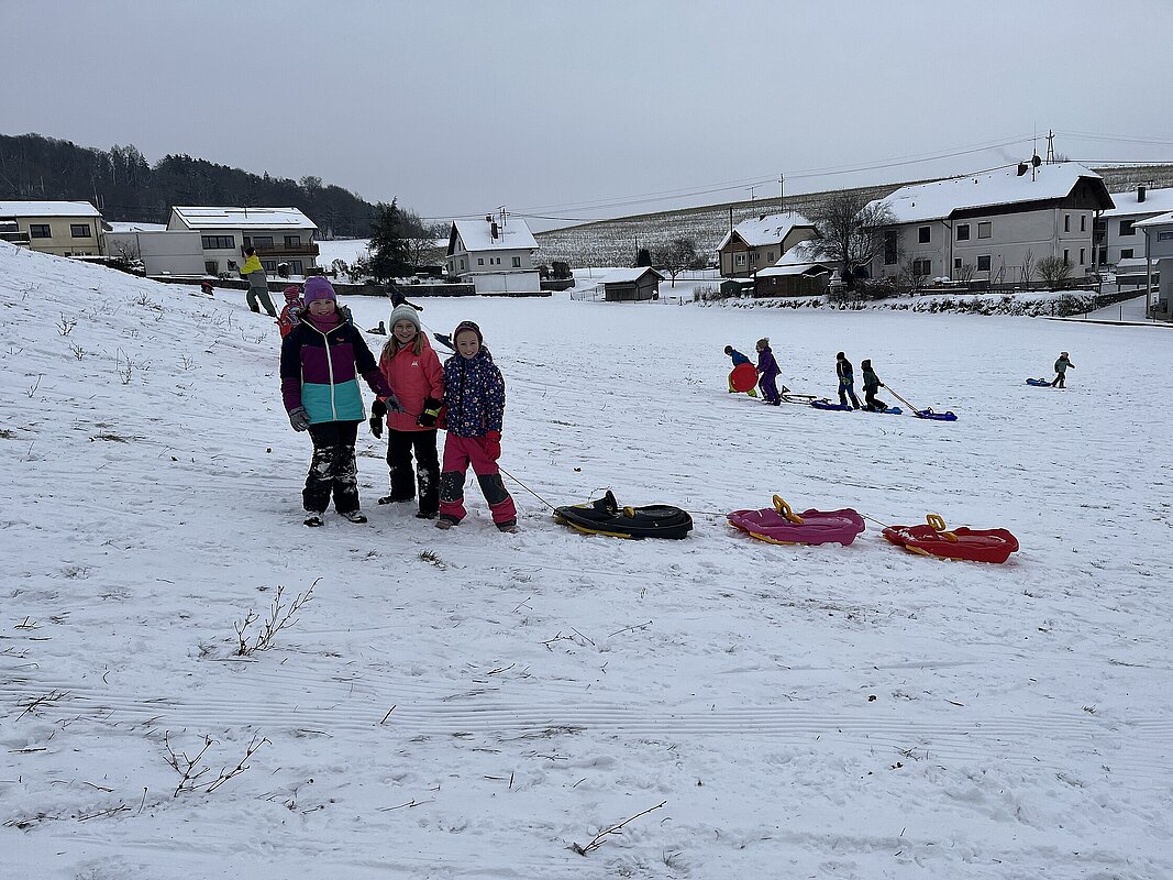 Am Montag haben wir die günstige Schneelage ausgenützt und uns nach der Pause aufgemacht zur Wiese beim “Bauer im Hof”. Ausgerüstet mir Bobs, Schlitten und Rutschtellern machten 80 Kinder und Lehrkräfte die Wiese unsicher und genossen die kleine Auszeit vom Schulalltag. Ein herzliches Danke an Familie Gintersdorfer für die Erlaubnis, ihre Wiese zu nutzen - wir hatten sehr viel Spaß!