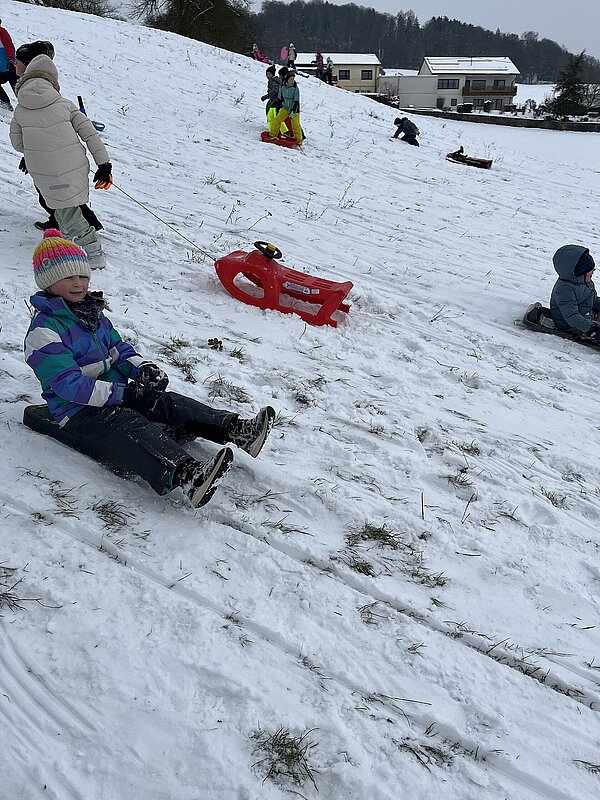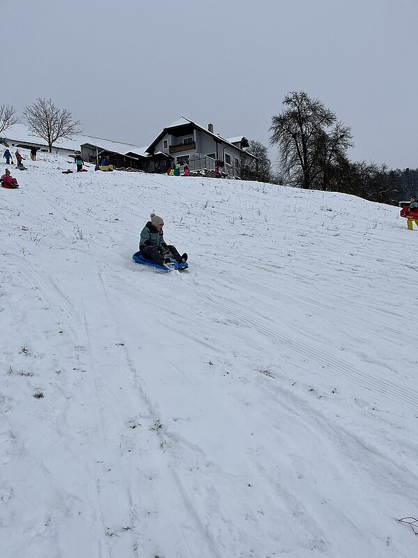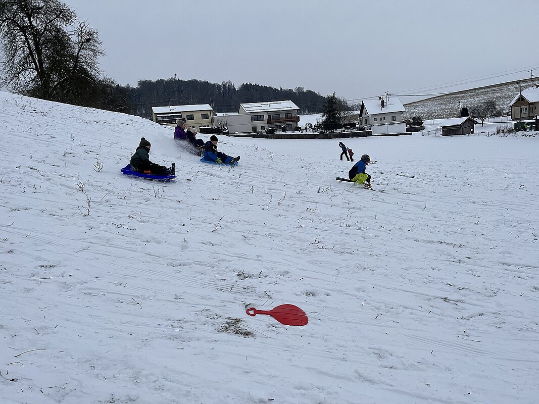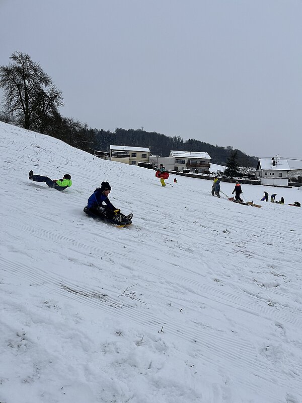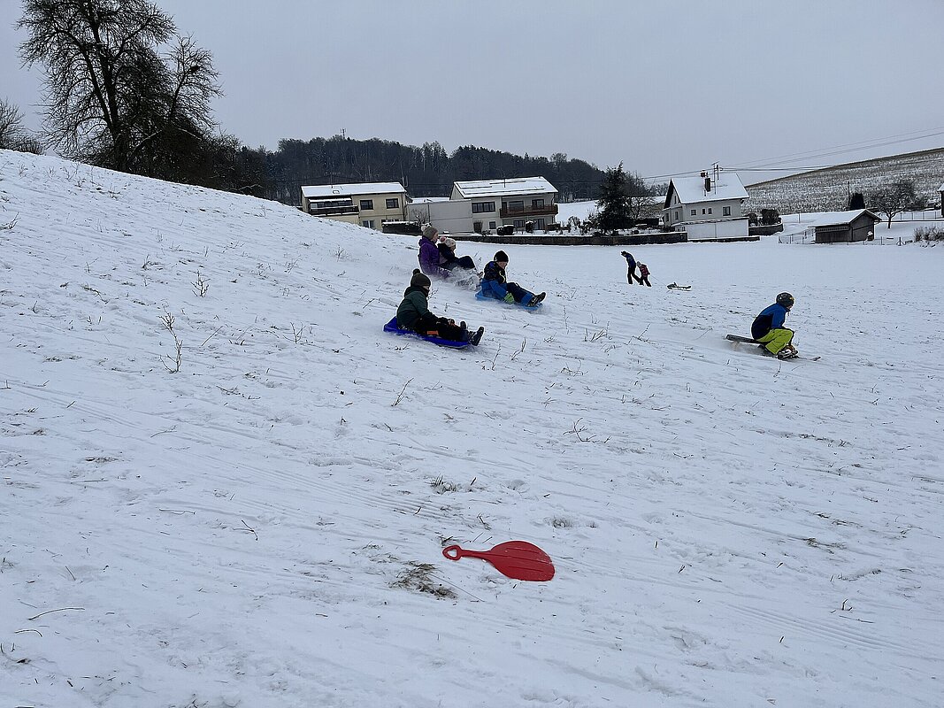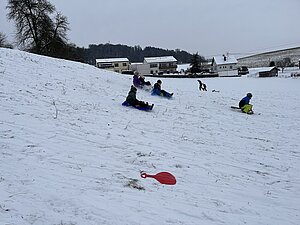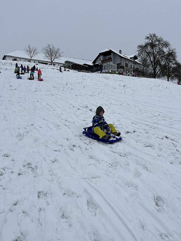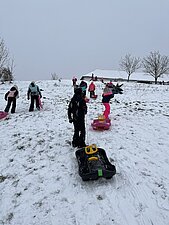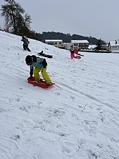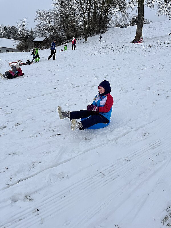Am Montag haben wir die günstige Schneelage ausgenützt und uns nach der Pause aufgemacht zur Wiese beim “Bauer im Hof”. Ausgerüstet mir Bobs, Schlitten und Rutschtellern machten 80 Kinder und Lehrkräfte die Wiese unsicher und genossen die kleine Auszeit vom Schulalltag. Ein herzliches Danke an Familie Gintersdorfer für die Erlaubnis, ihre Wiese zu nutzen - wir hatten sehr viel Spaß!